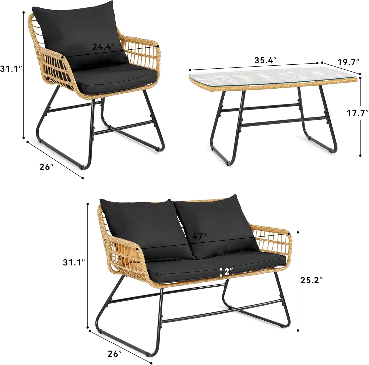 Elevate your outdoor living space with the YITAHOME 4-Piece Patio Furniture Wicker Outdoor Bistro Set. This stylish and durable set includes a loveseat, two chairs, and a metal table, perfect for creating a cozy and inviting seating area in your backyard, balcony, or deck.