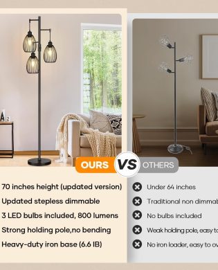 Introducing the Dimmable Floor Lamp – the perfect blend of style and functionality for your living space. This Farmhouse Industrial Floor Lamp features a sleek black finish that effortlessly complements any decor style, whether in a living room, bedroom, office, or dining room. The standing tree design adds a touch of elegance, while the teardrop…