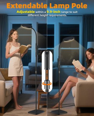 Introducing the versatile and modern Adjustable Height Floor Lamp, the perfect lighting solution for your living room, bedroom, office, or craft space. This sleek black standing lamp features 120 energy-efficient LED lights that provide super bright illumination for all your tasks and activities. With both remote and touch control capabilities, you can easily adjust the…
