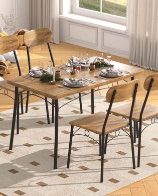 Introducing the VECELO Kitchen Table Chairs Set for 4 – the perfect dining solution for small spaces! This 5-piece set includes a stylish wood dining room table with four matching chairs, designed to fit seamlessly in compact kitchens, breakfast nooks, and dining areas. The rich brown finish adds warmth and elegance to any space, while…