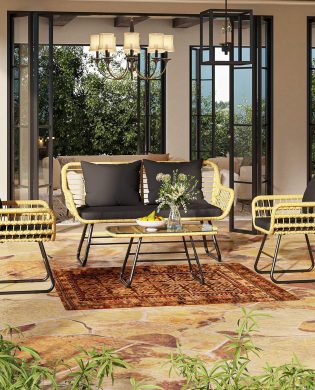 Elevate your outdoor living space with the YITAHOME 4-Piece Patio Furniture Wicker Outdoor Bistro Set. This stylish and durable set includes a loveseat, two chairs, and a metal table, perfect for creating a cozy and inviting seating area in your backyard, balcony, or deck. Crafted from all-weather rattan, this bistro set is designed to withstand…